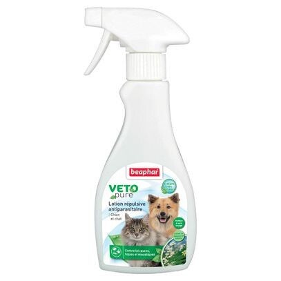 Lotion répulsive antiparasitaire VETOpure Beaphar pour chien ou chat permet de traiter efficacement vos animaux contre les parasites en tout genre. Facile à appliquer et sans rinçage.