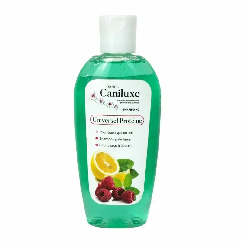 Exclusivité Distridog. Shampoing Caniluxe Universel protéiné. Hyppoallergénique et super doux, il convient à tous types de poils. Brillance et vitalité à la clé !