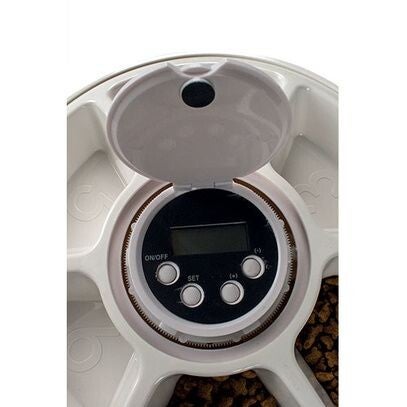 Le distributeur automatique de croquettes IdealDog pour petit chien ou chat vous permettra de programmer jusqu'à 6 repas pour votre animal.